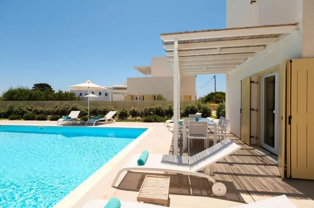 The villa 2 we had was great. Very clean, large pool, super nice support from Helena at any time! Location is very quiet, but in a few minutes you are in great taverns in Dryos or on the Golden Beach. Beee Surfspots (Golden Beach and New Golden Beach) can be reached by car in a few minutes.